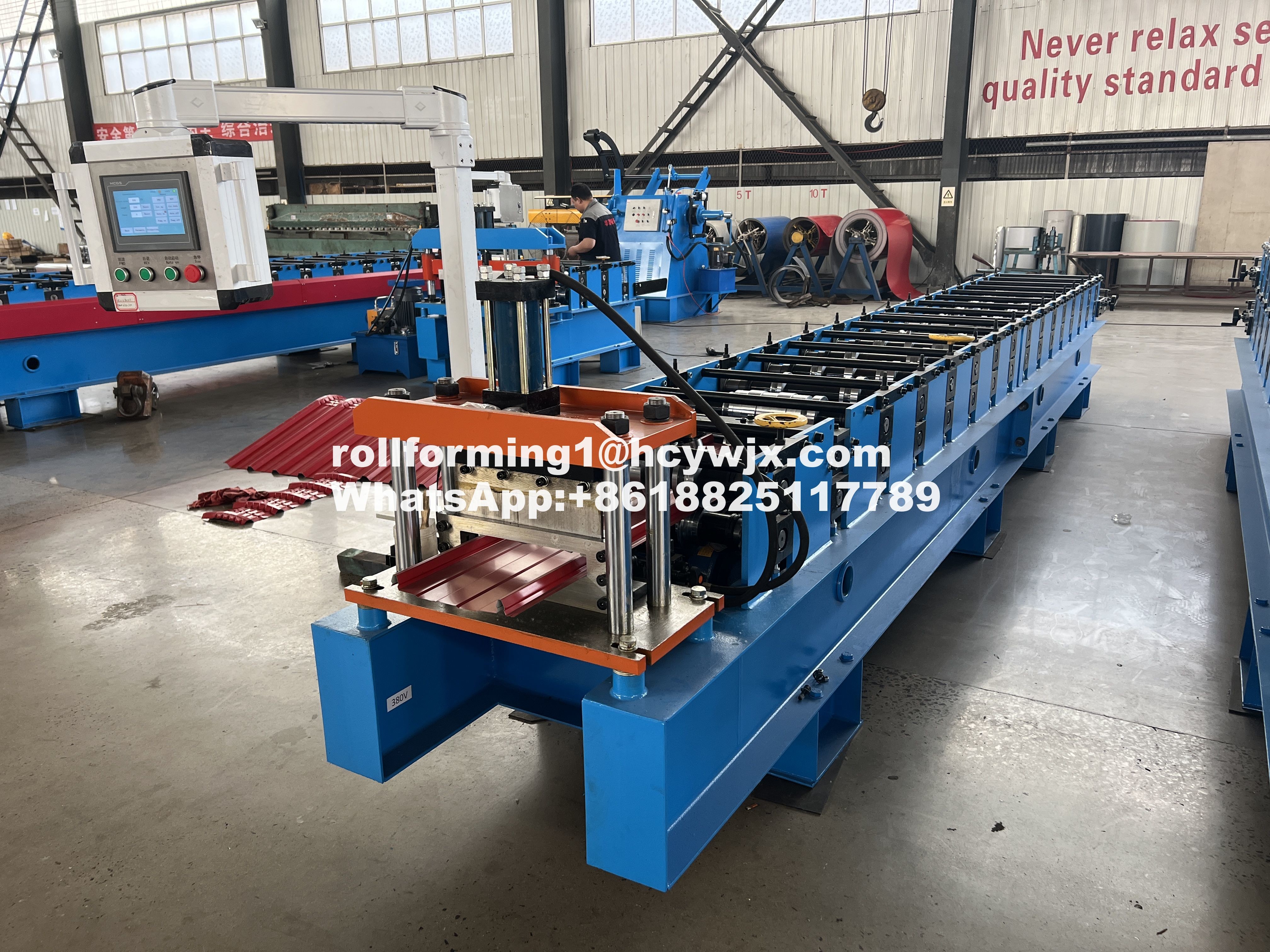 Equipment components: Man-made uncoiler-roll forming machine-computer control system-hydraulic control system-cutting